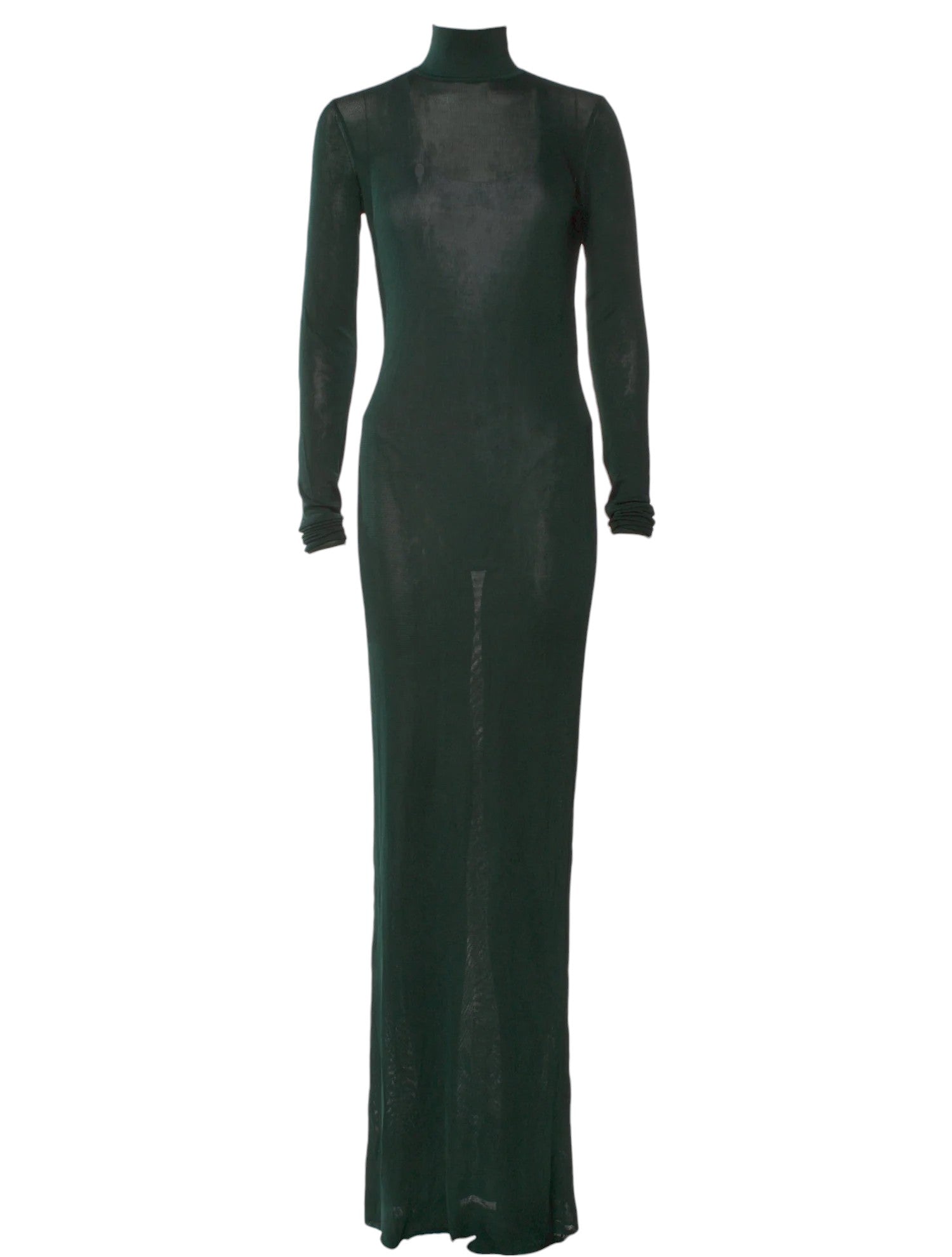 Runway SS 2023 Sheer mockneck knit, forest green.